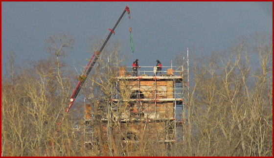 Partieller Rückbau des Gerüsts am Treppenturm |